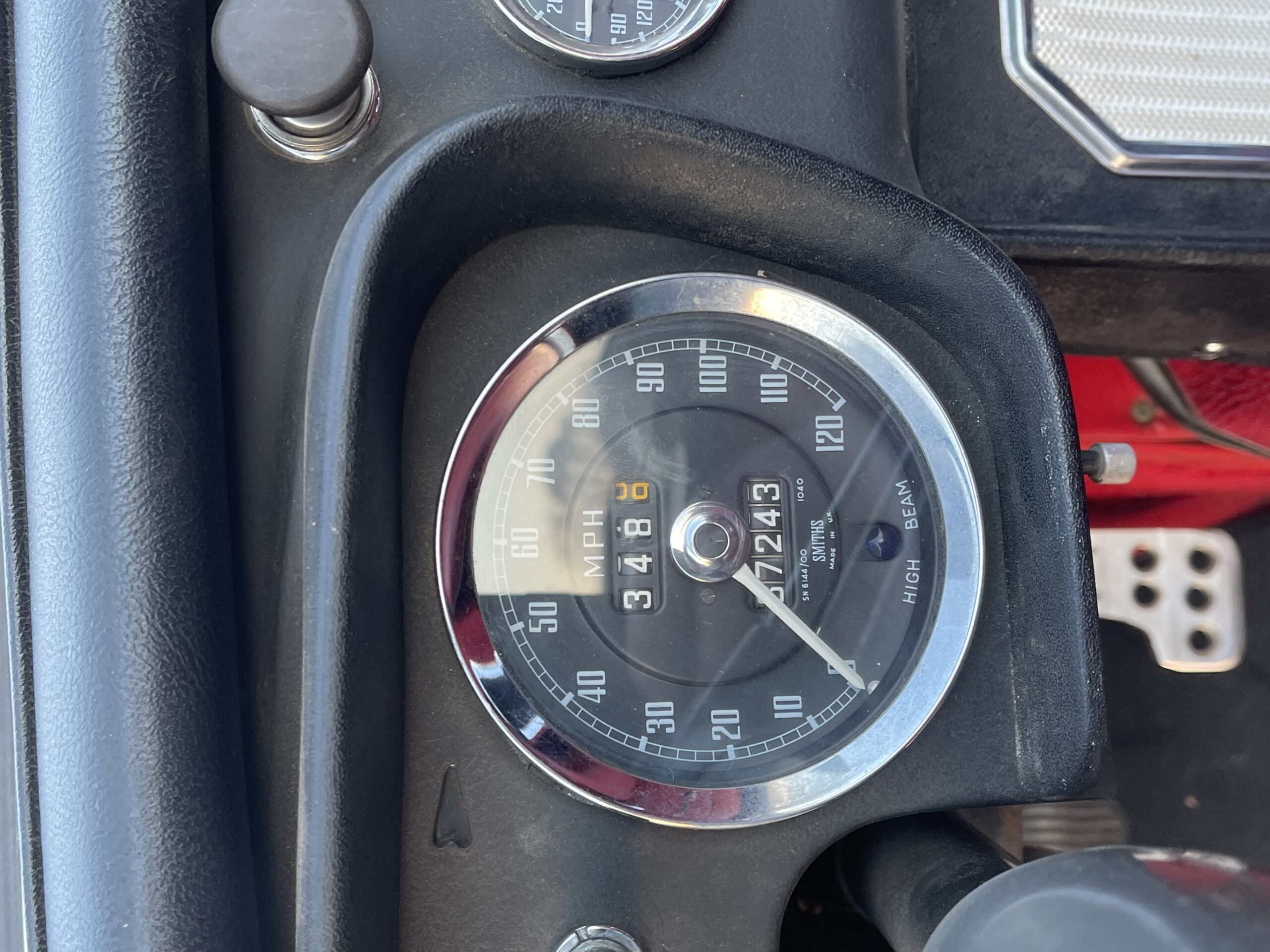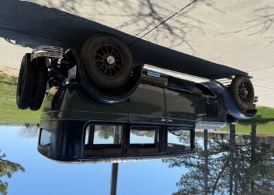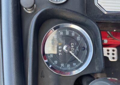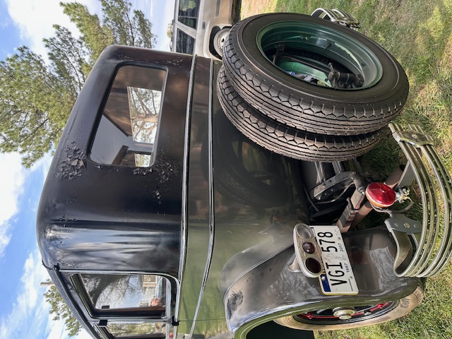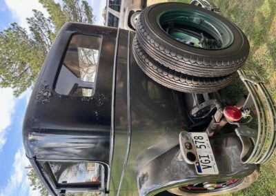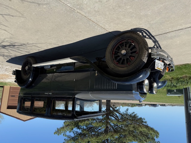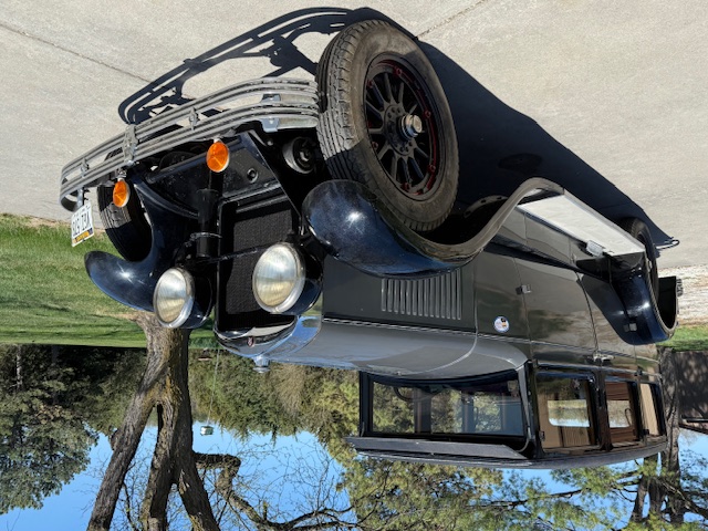 Black Paint, Red Interior, Steel Bumpers, Wire Wheels with Knock Off Hubs,