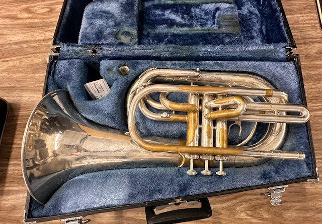 Yamaha Baritone YBH301M from the University of Nebraska Band Dept.  Serial #002698.  Used by Alumni Nestor Pelayo. There is NO mouthpiece included.