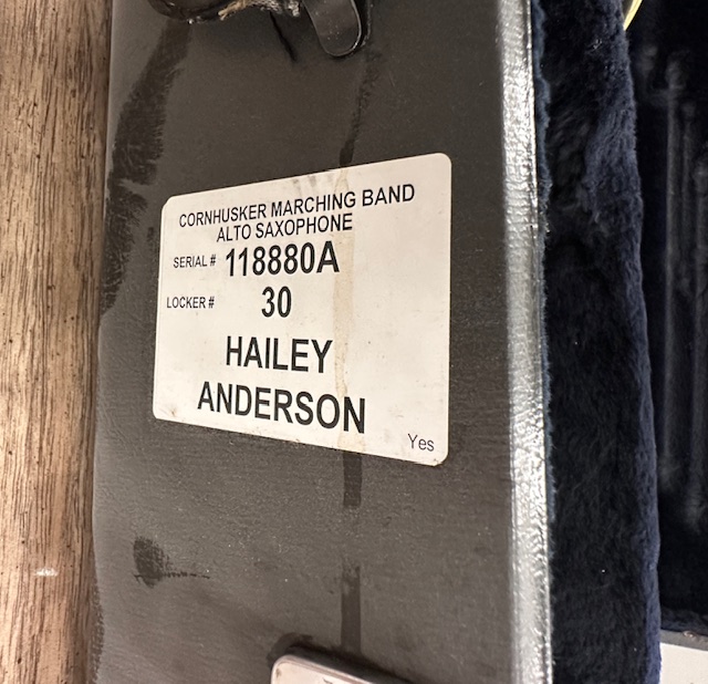 Yamaha Alto Saxophone from the University of Nebraska Band Dept. Serial #118880A. Used by Alumni Hailey Anderson.