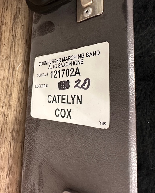 Yamaha Alto Saxophone from the University of Nebraska Band Dept. Serial #121702A. Used by Alumni Catelyn Cox.